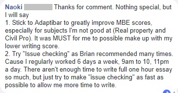 NAOKI: Member of the Japanese bar (3% passage rate). Non-native speaker. Never went to an American law school. Worked full time. Passed the 2017 July California Bar Exam.